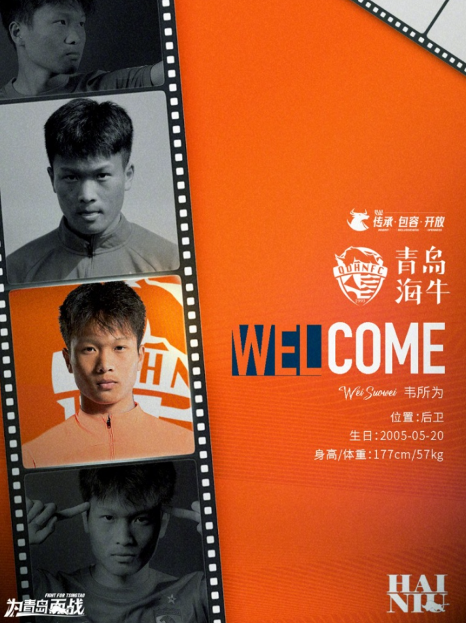 0岁的青岛海牛球员韦所为已开始随中甲球队重庆铜梁龙进行训练 韦所为在本赛季中超联赛中代表青岛海牛出战14场