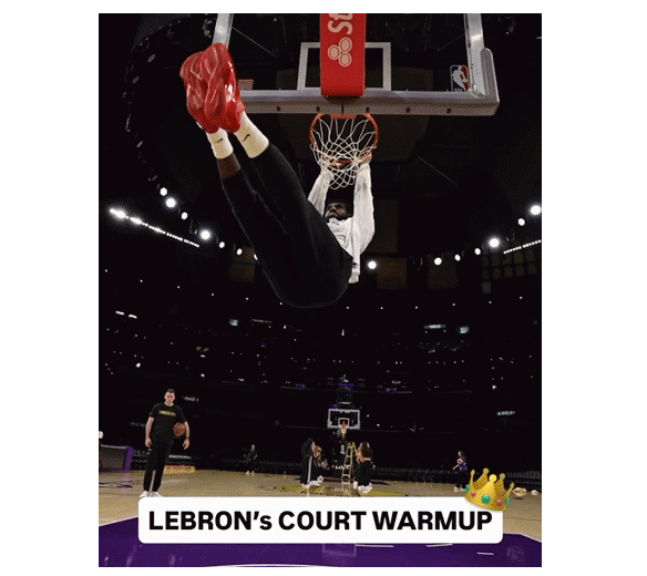 詹皇赛前秀炸裂 与啦啦队同框热舞练中投 扣篮挂筐引满堂彩