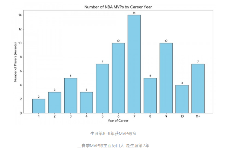 MVP年份规律:6-9年生涯最多 上赛季亚历山大正处第7年