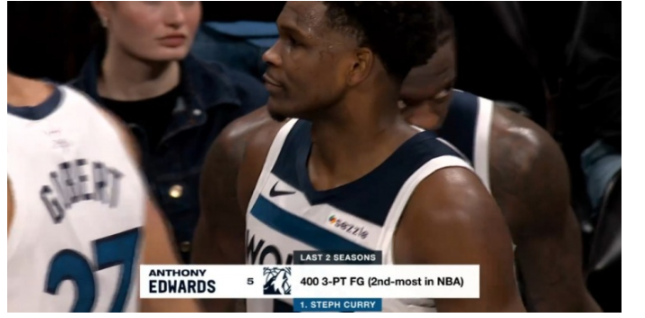 爱德华兹近两季三分命中400记 仅次于库里排历史第二
